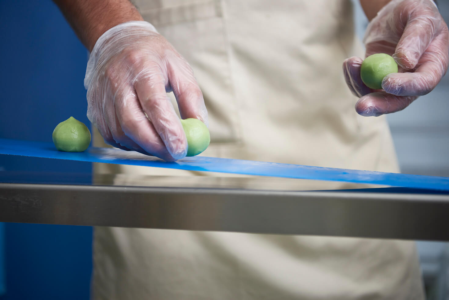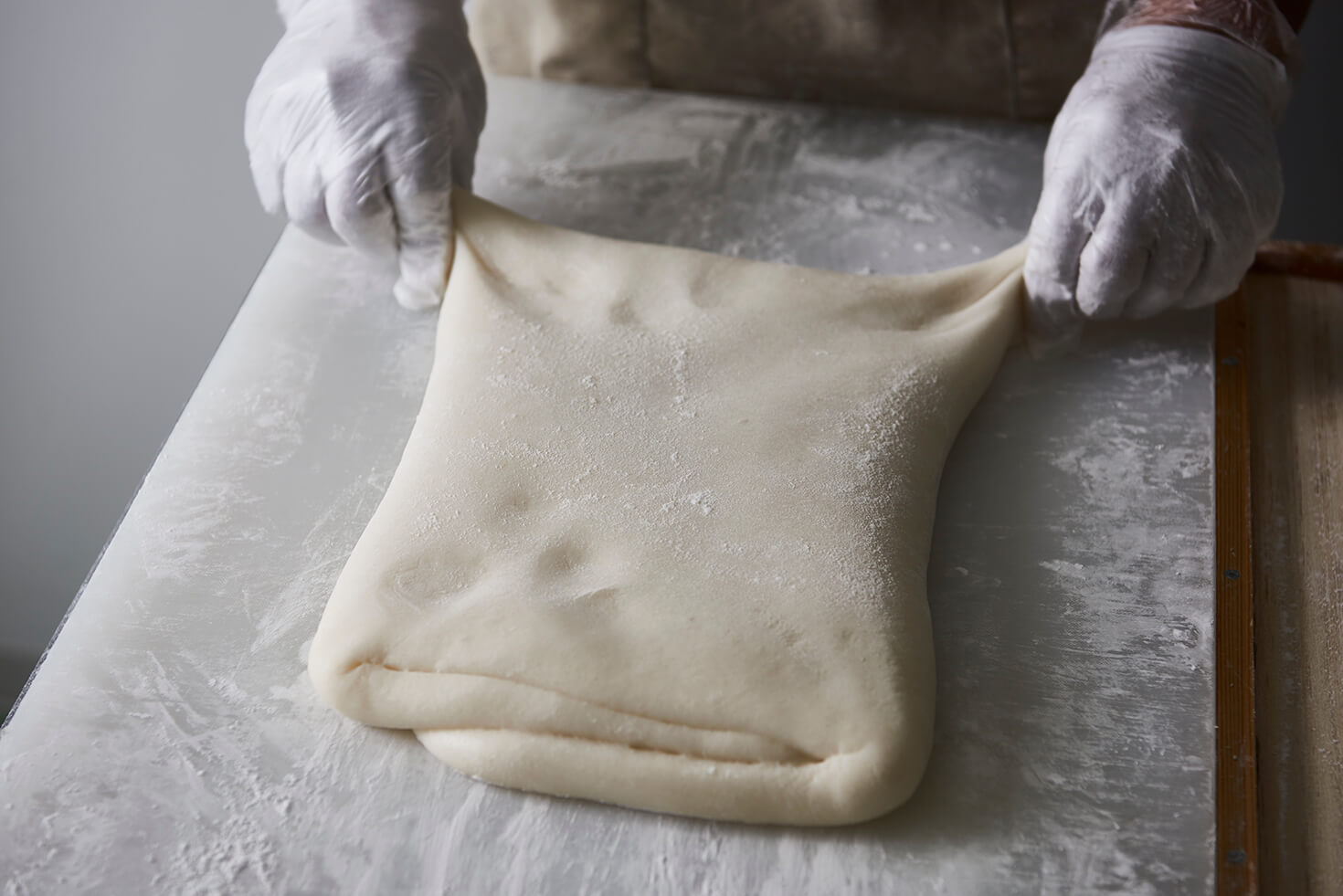 季節はもちろん、気温や水温、もち米の銘柄などで、仕上がりが大きく変わるお餅。お餅はまさしく、生きています。毎日変わる水加減・蒸し加減・つき加減を熟練が確かな腕で見極めます。のしたり、こねたり、丸めたり、仕上げの部分はていねいに手仕事で。三代目餅屋和平のポリシーは、目をかけ、手をかけ、心を込めた餅づくりです。